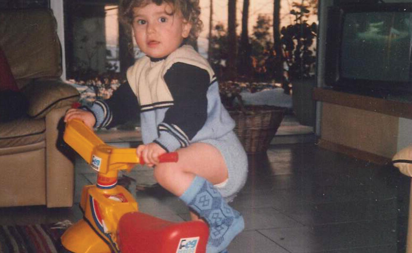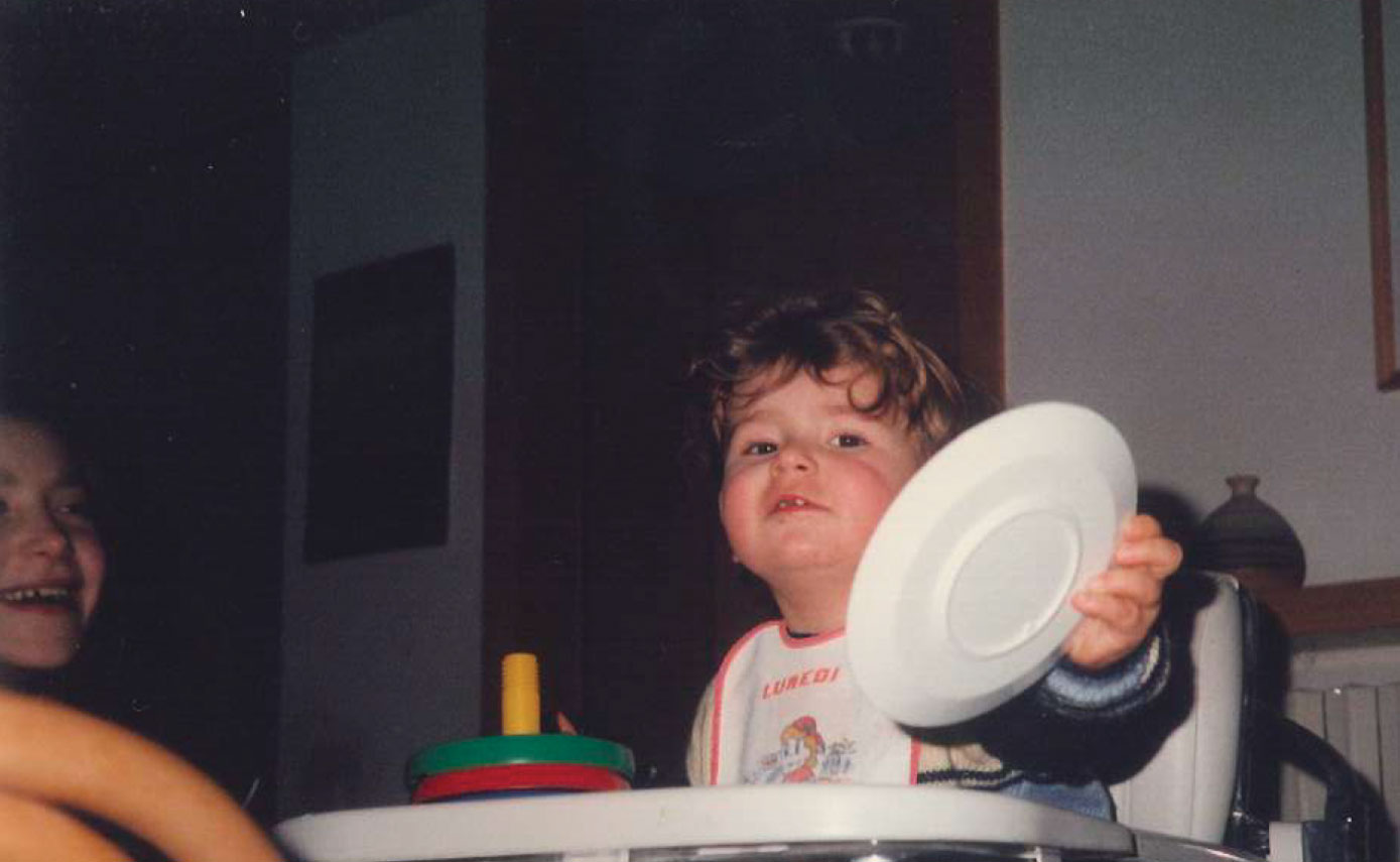 Mamma Chiara ha le prove del mio amore innato per il "lancio del piatto" e per i motori (da notare: il colore del mio triciclo è uguale a quello della mia attuale Vespa!).